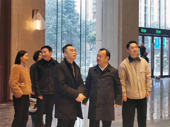 12月24日上午,大渡口区委书记张果一行到潜能中心项目部调研指导工作,实地查看喜来登酒店装修进展及春节前试营业筹备情况。潜能集团董事长张龙义、总经理张宬铭陪同调研并作工作汇报。